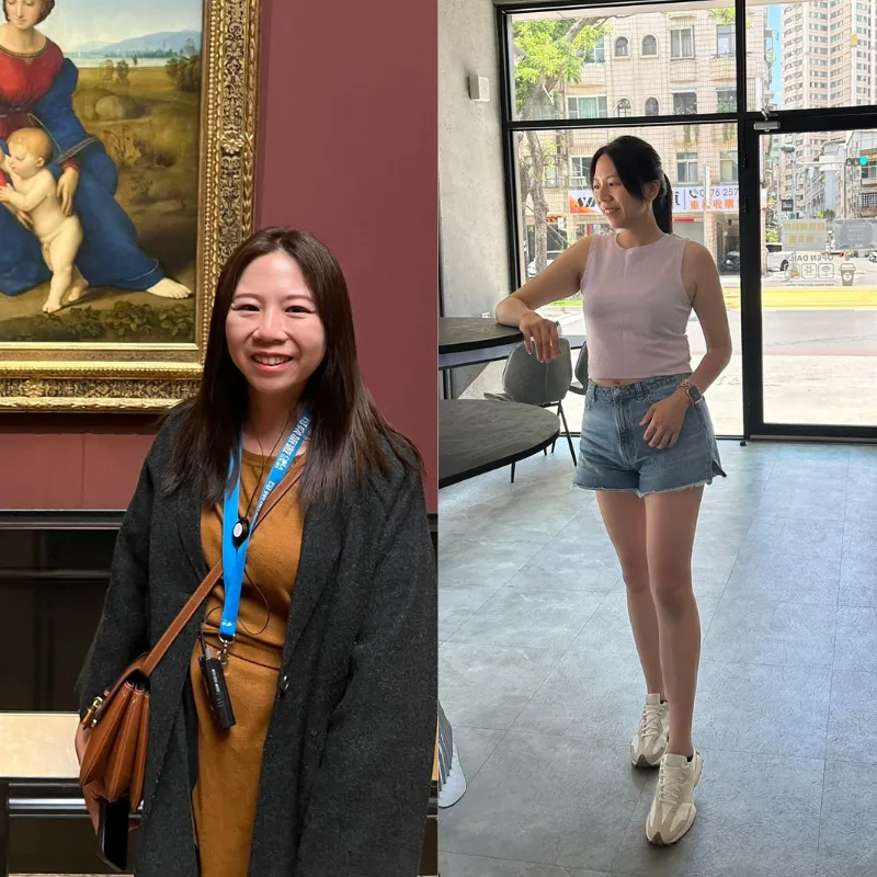 過去我屬於「泡芙體質」,手臂鬆垮、體脂高,還因腰痛看醫生,甚至復胖到55kg、體脂35%。靠運動與嚴格飲食雖然短暫瘦下來,卻痛苦又無法持續。直到參加【超塑計畫】,我從49→43kg、體脂26%→20%,手臂緊實、褲子從M變S,椎間盤不再復發,代謝變好不怕復胖。我終於學會愛自己、照顧自己。